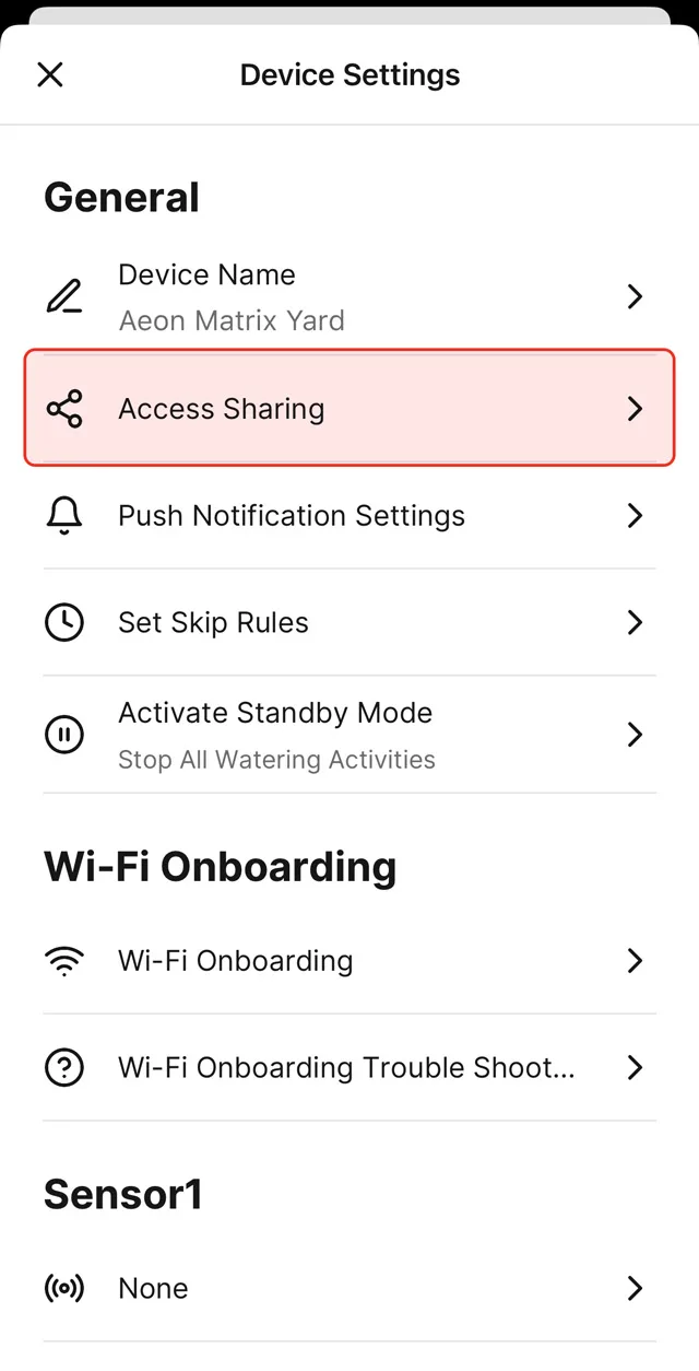 3. Choose “Access Sharing” in the Device Settings.