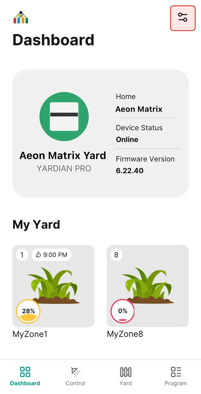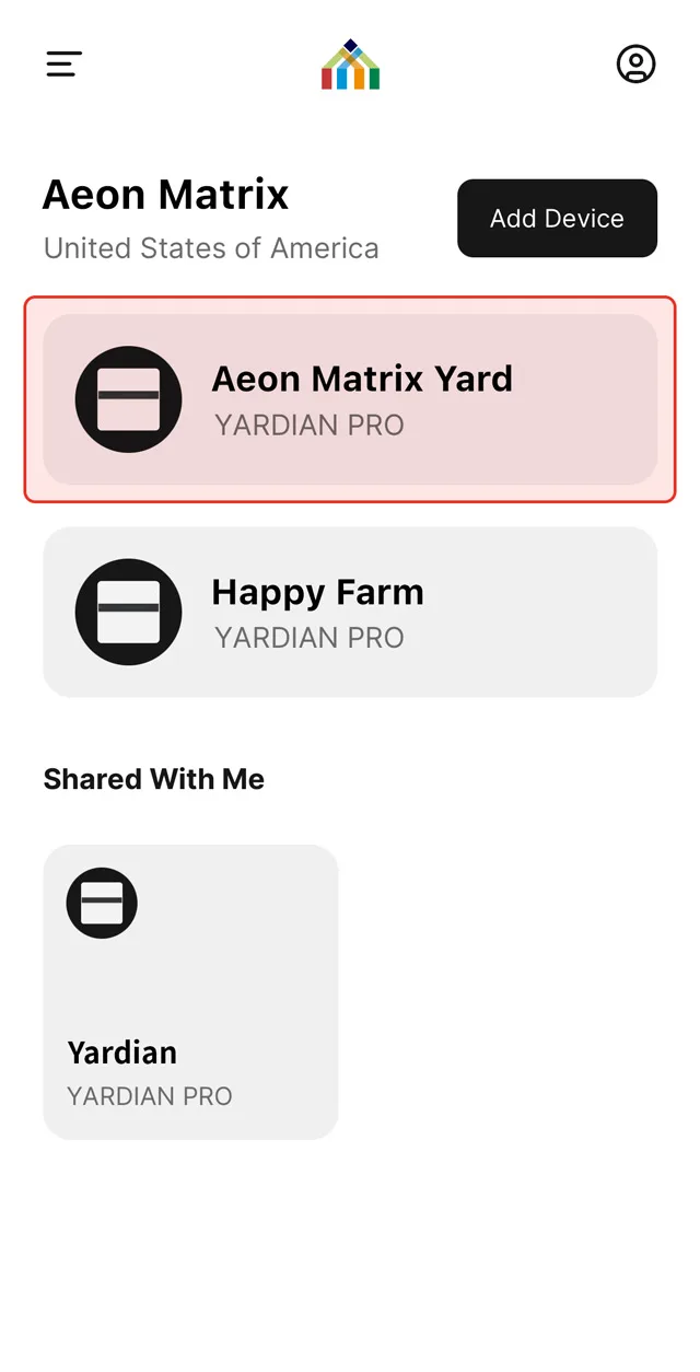 1. From the Home tab in the Yardian app, select the controller you want to share access to.